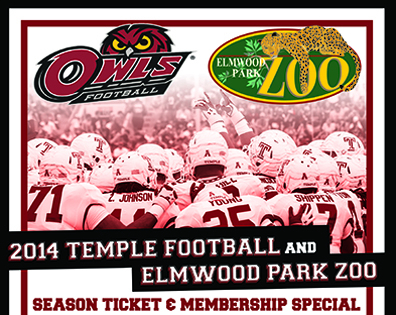 One year of free admission to Elmwood Park Zoo for two adults/parents and up to six children under the age of 18, PLUS Temple football season tickets for two adults and one child (additional child season tickets may be purchased for $25 per child).